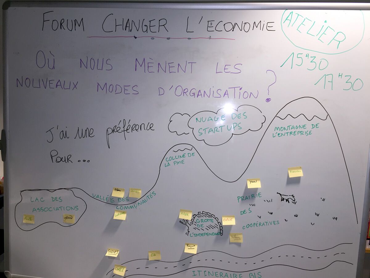 Dans le cadre du forum biennal “Changer l’économie”, un atelier participatif ouvert est réalisé.